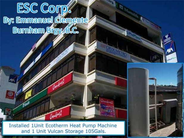 Installed 1 Unit Ecotherm Heat Pump Machine w/ 1 Unit Ecotherm Storage 60Gals. and 8 Units Different Models of Ecotherm Shower Heaters -