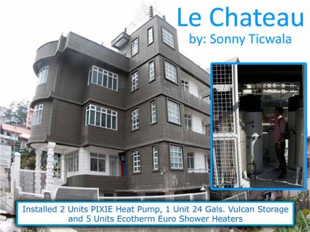 Installed 2 Units PIXIE Heat Pump, 1 Unit 24 Gals. Vulcan Storage and 5 Units Ecotherm Euro Shower Heaters